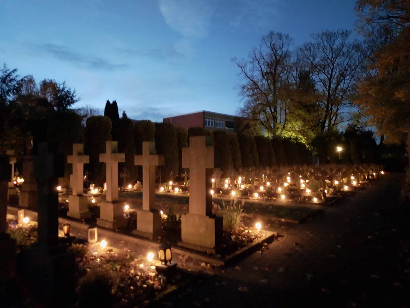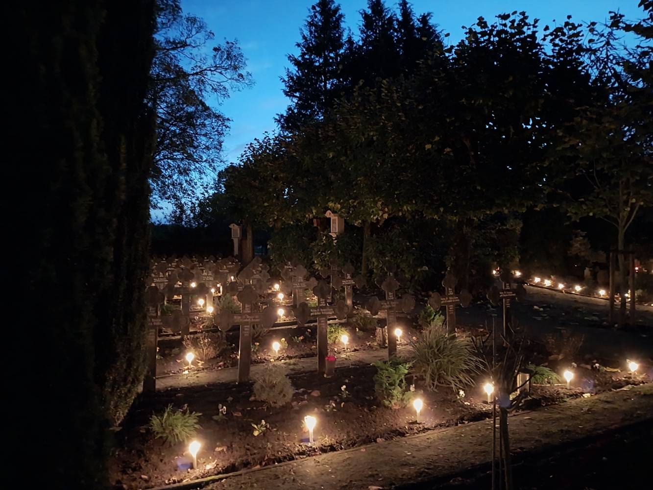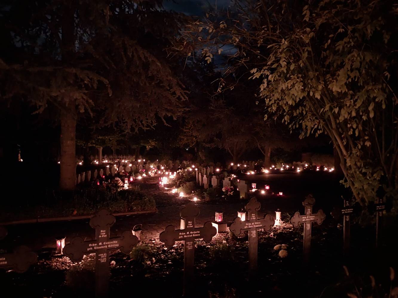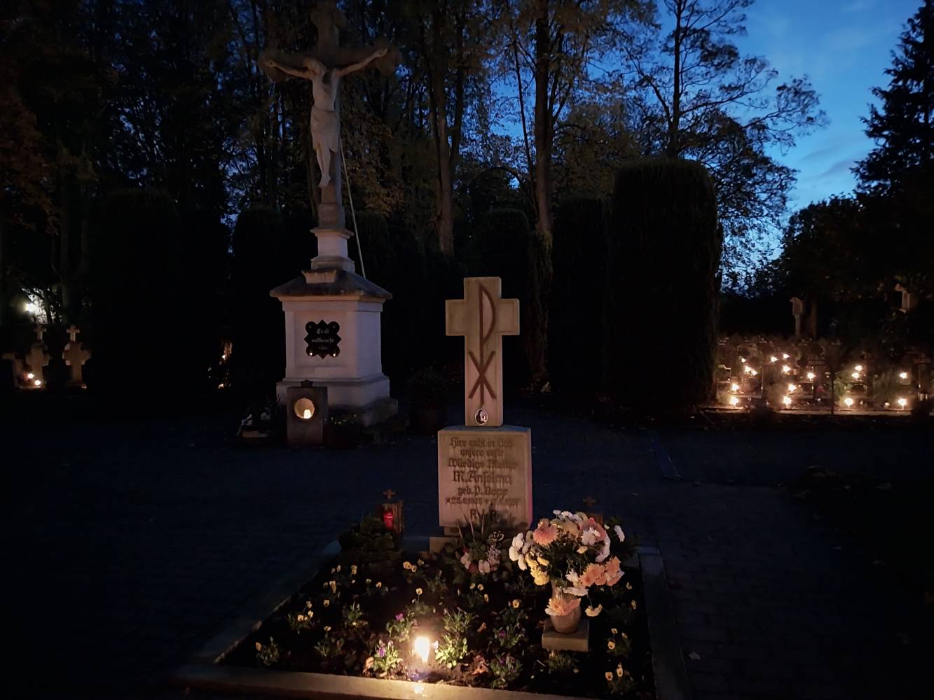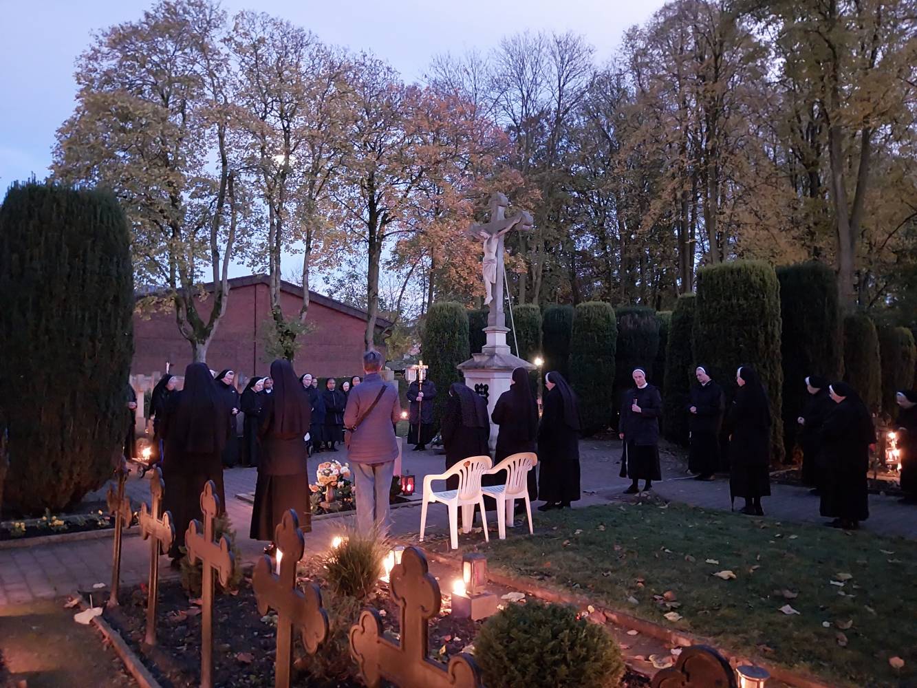 On All Souls Day, which we celebrate on November 2nd, we think of all the deceased; as a religious community, we particularly recall our deceased co-sisters. We especially pray for the souls of the deceased and for their salvation. After evening Vespers, during which all of the deceased co-sisters from the past year were remembered, we went to the cemetery to pray in a special way for the sisters who are buried there. The graves were blessed by Fr. Klemens, OFM, and theyshone like a sea of light made up of candles. Afterwards, we participated together in the Holy Mass.